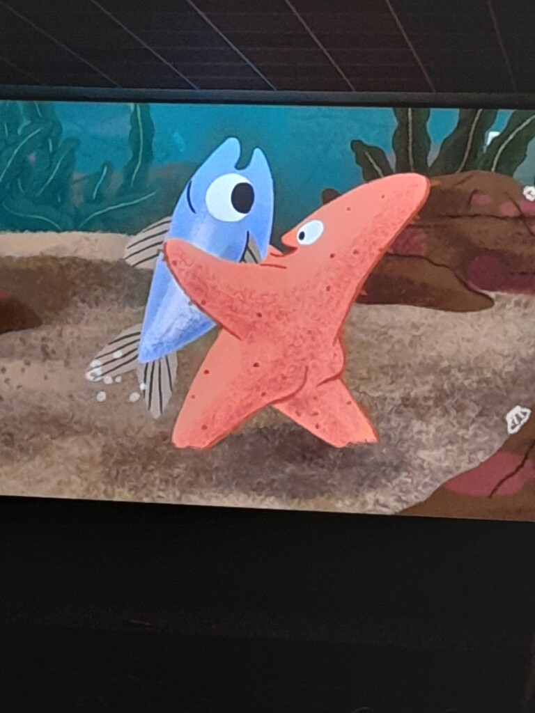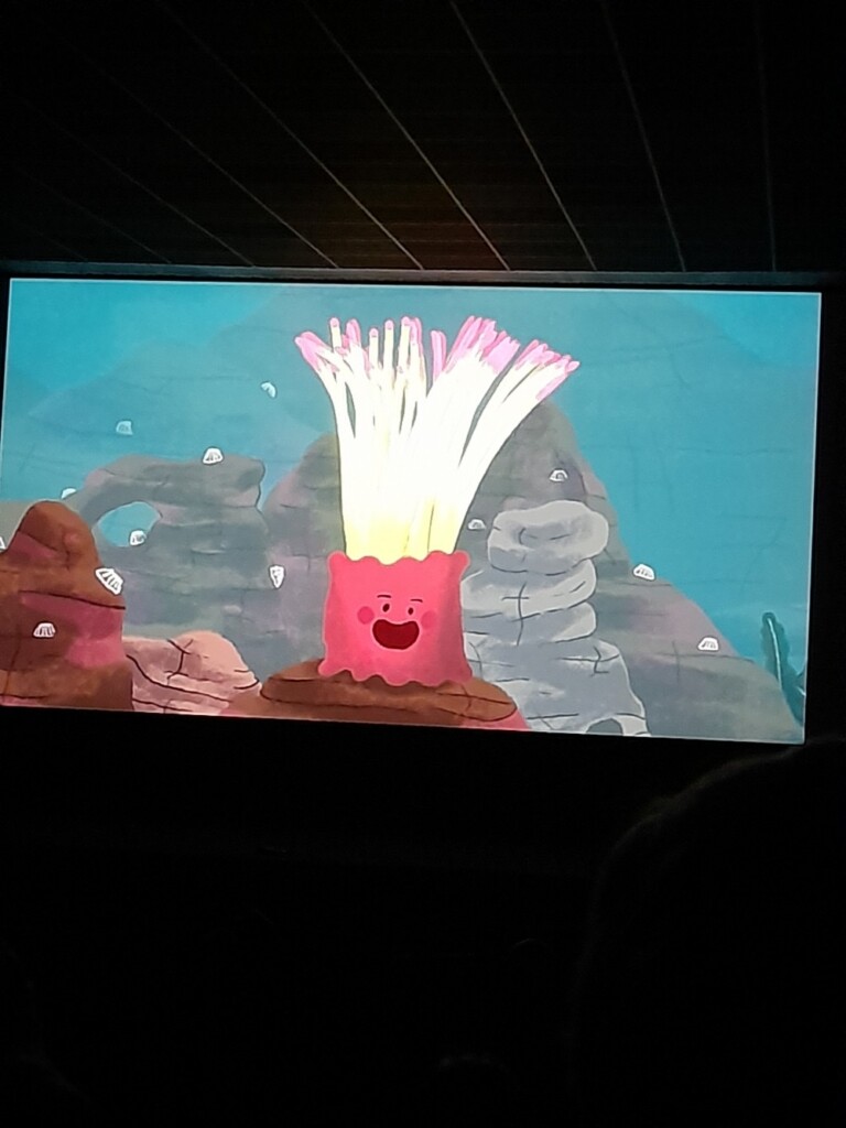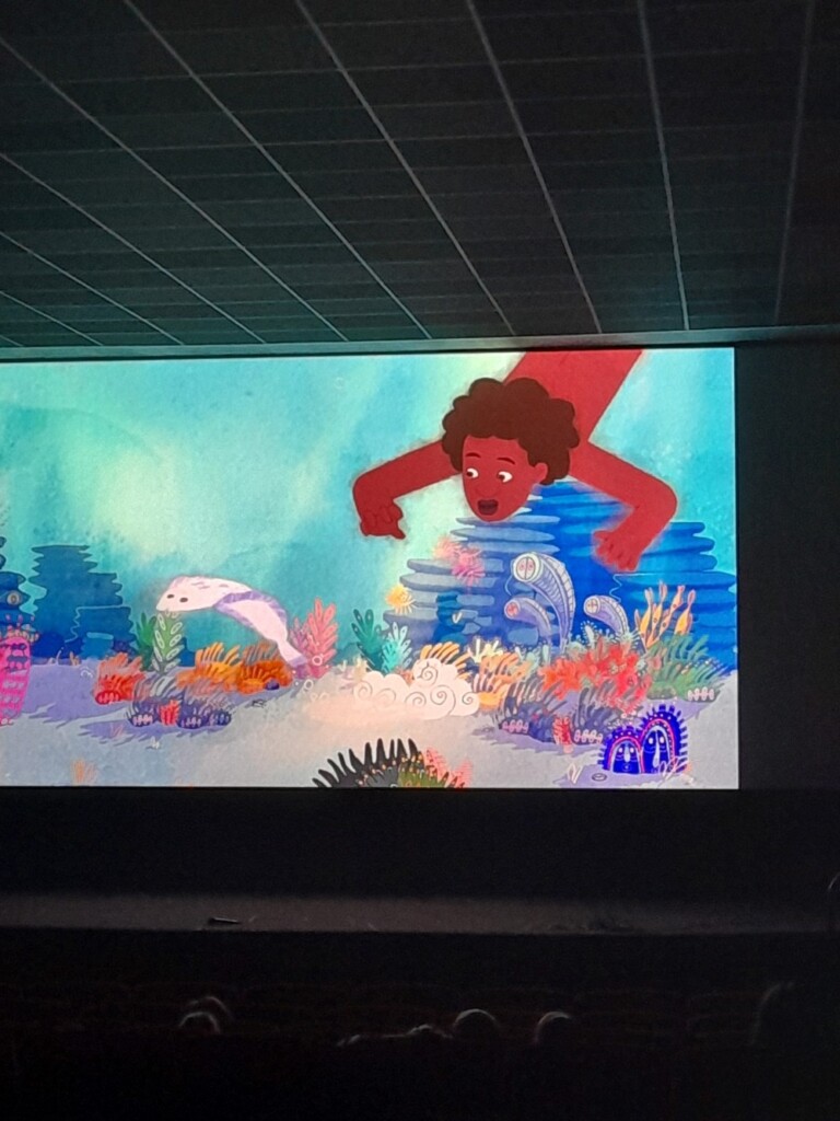 Jeudi 16 octobre, 1ère séance de Cin’école, en lien avec notre projet d’année. Nous avons découvert la salle, le grand écran, les fauteuils, le projecteur. Puis nous avons assisté à la projection de plusieurs petits dessins animés sur le thème :  » Petits contes sous l’océan »