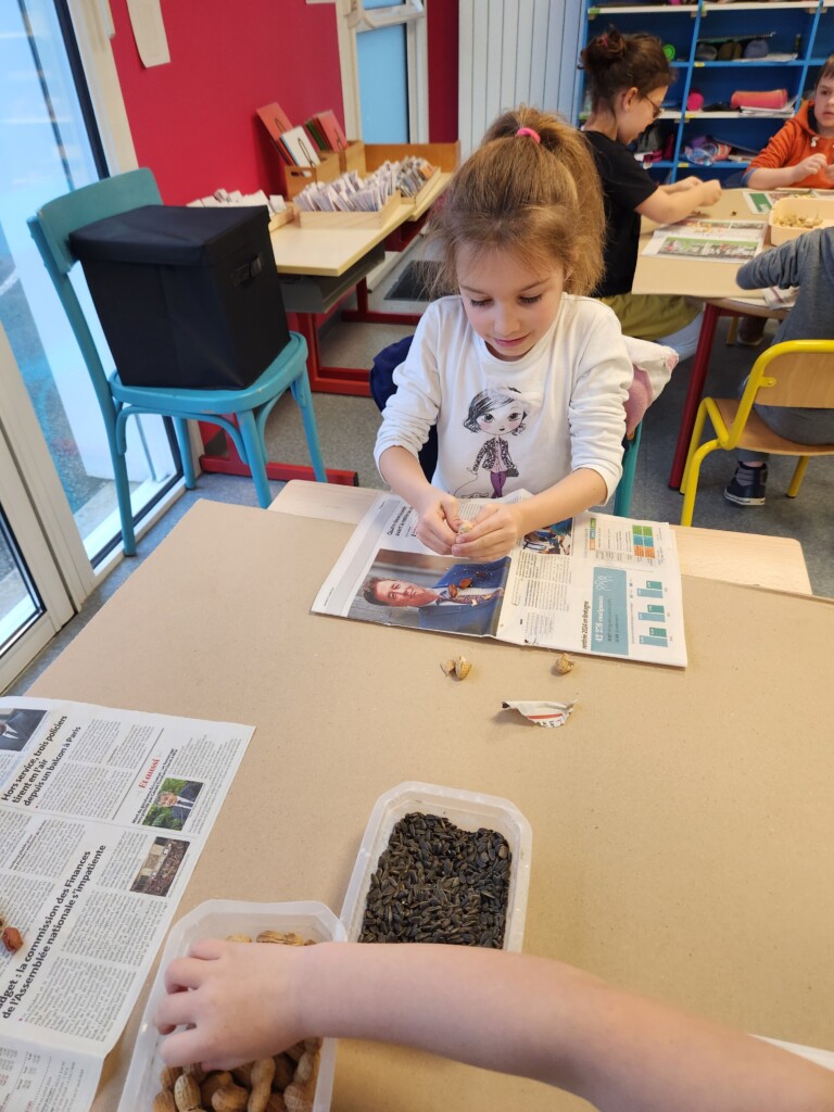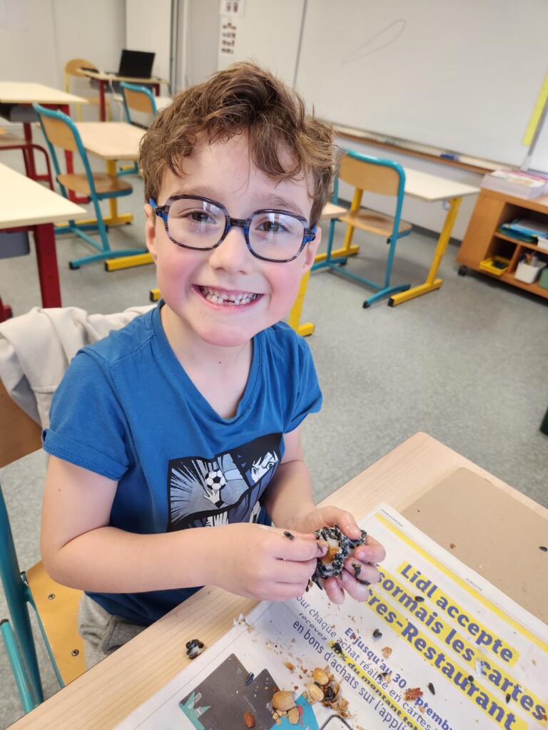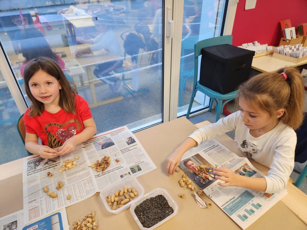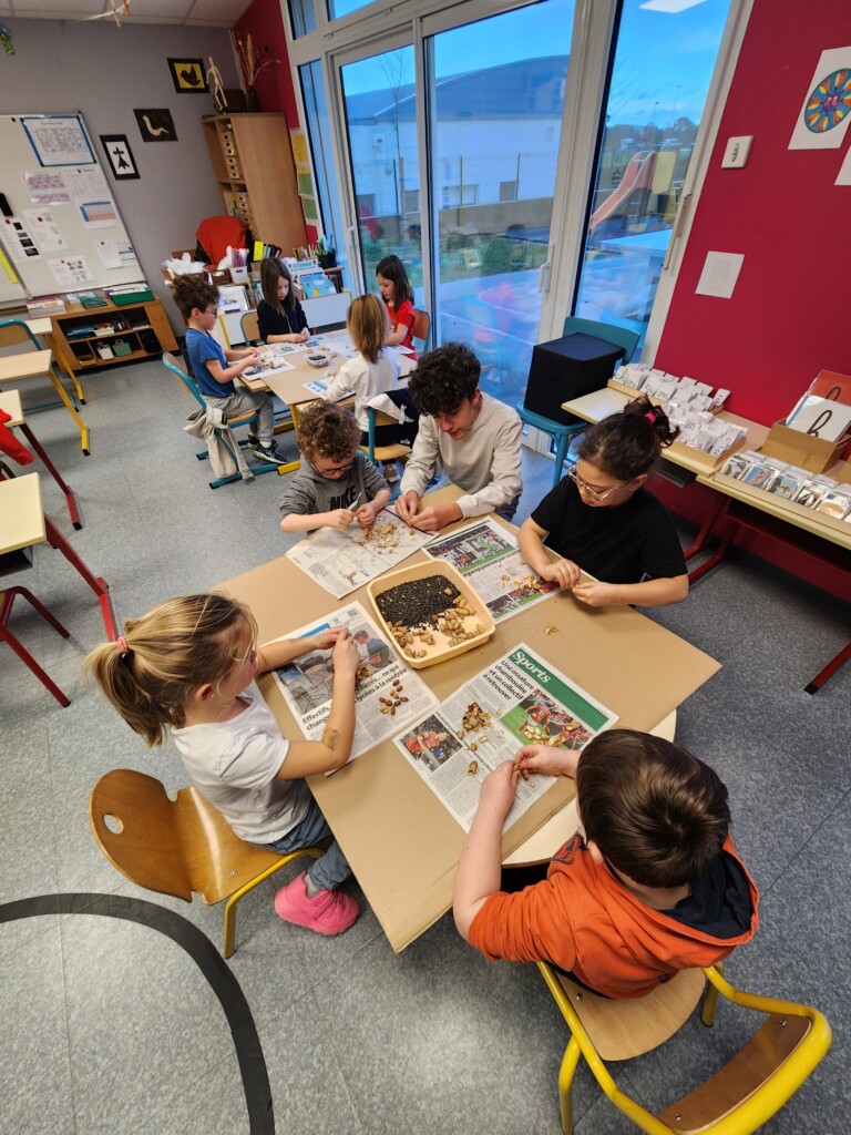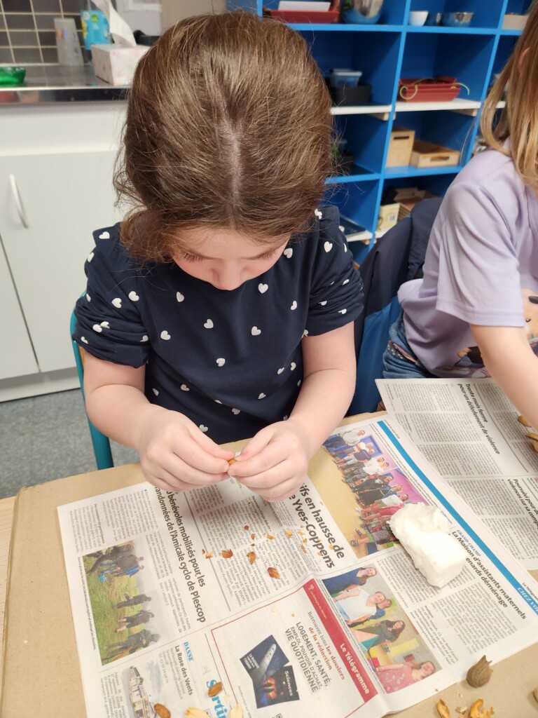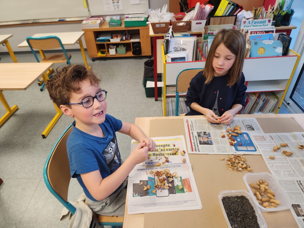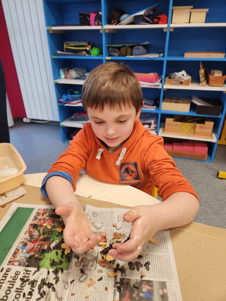 Nous avons enfin appris certains noms d’oiseaux et fabriqué des boules de graisses qui nourriront les oiseaux le reste de l’hiver à l’école ou dans nos jardins.
