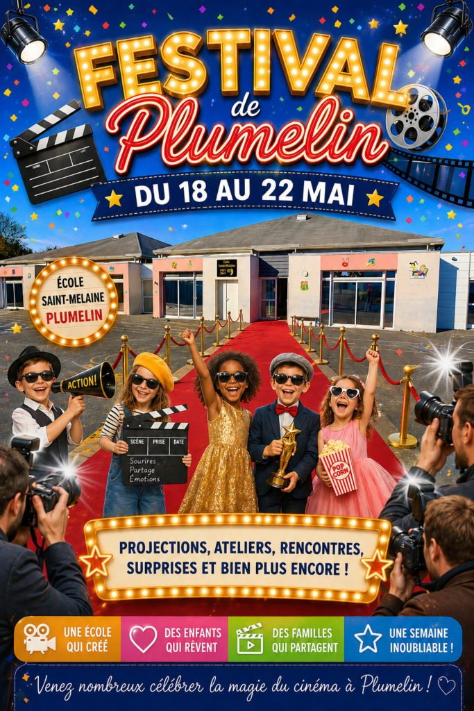 Palme d’Or, tapis rouge, séances photo, bruitages et découvertes des métiers du cinéma… Cette année, l’esprit du Festival de Cannes s’invite à Plumelin pour une semaine riche en découvertes et en créativité !