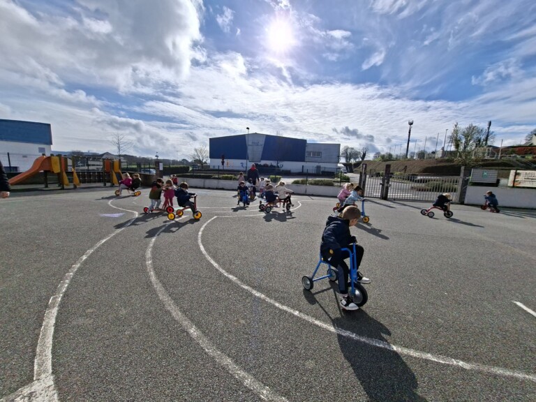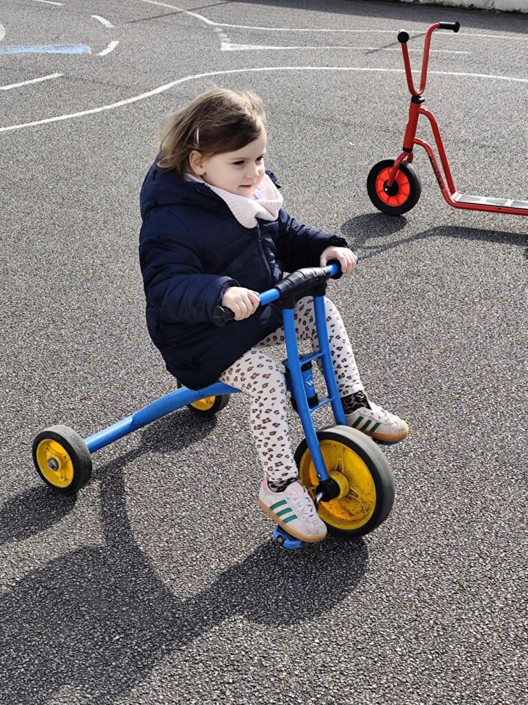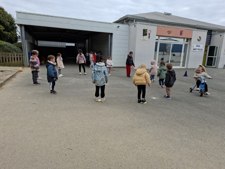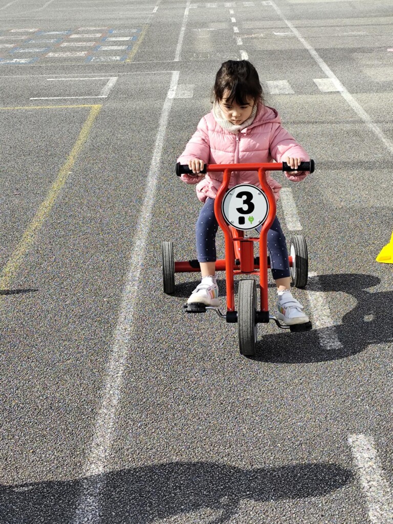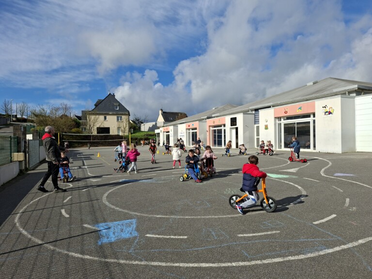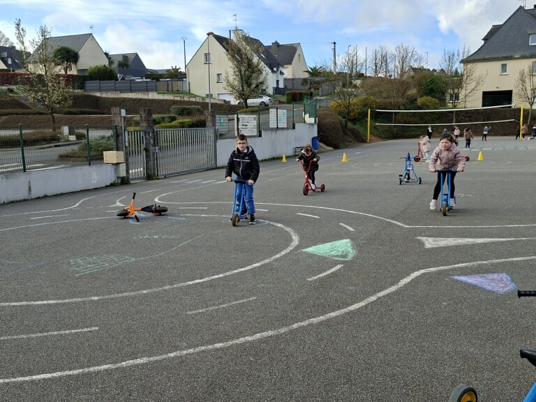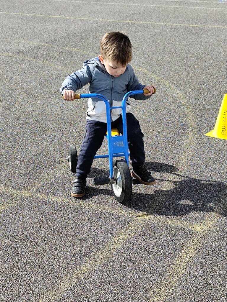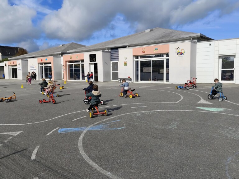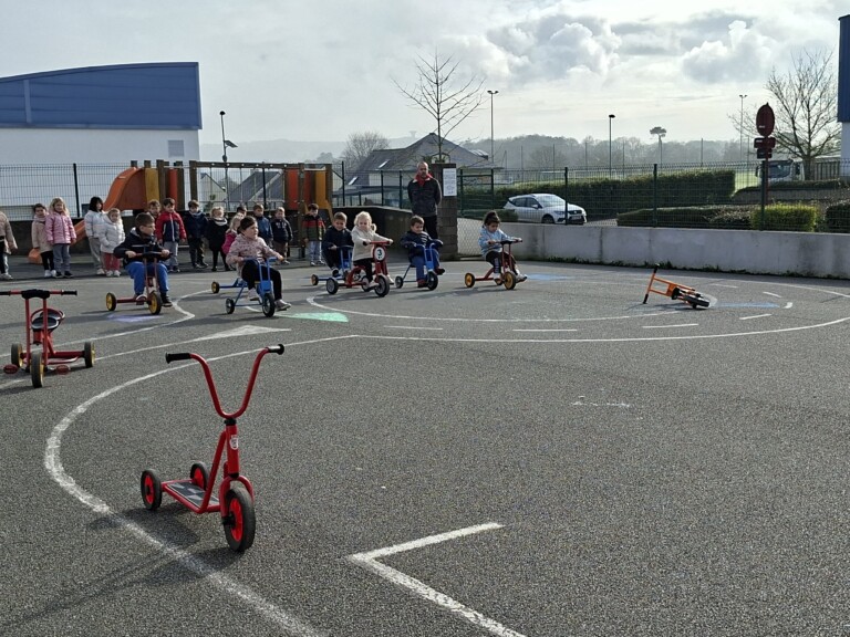 En cette quatrième période, Julien a proposé aux enfants des ateliers avec les engins roulants : vélos, trottinettes Conduire le vélo, la trottinette à 2, suivre un parcours, avancer, reculer, faire des relais, faire une chenille, le jeu de l’horloge, etc..