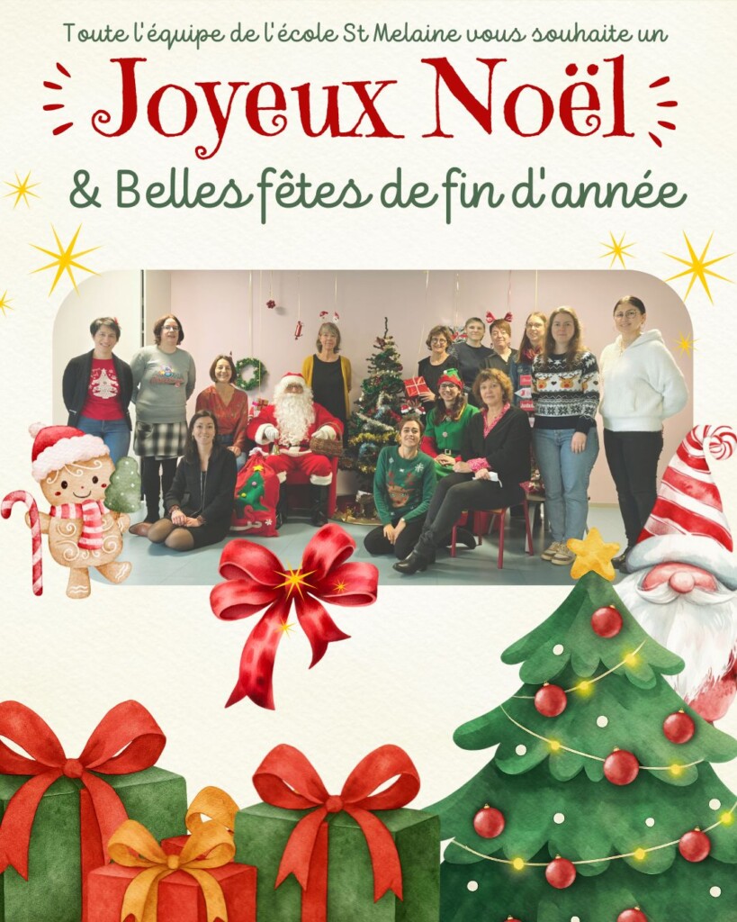Toute l’équipe de l’école St Melaine de Plumelin vous souhaite de Joyeuses Fêtes de fin d’année et de bonnes vacances en famille !