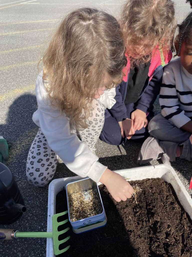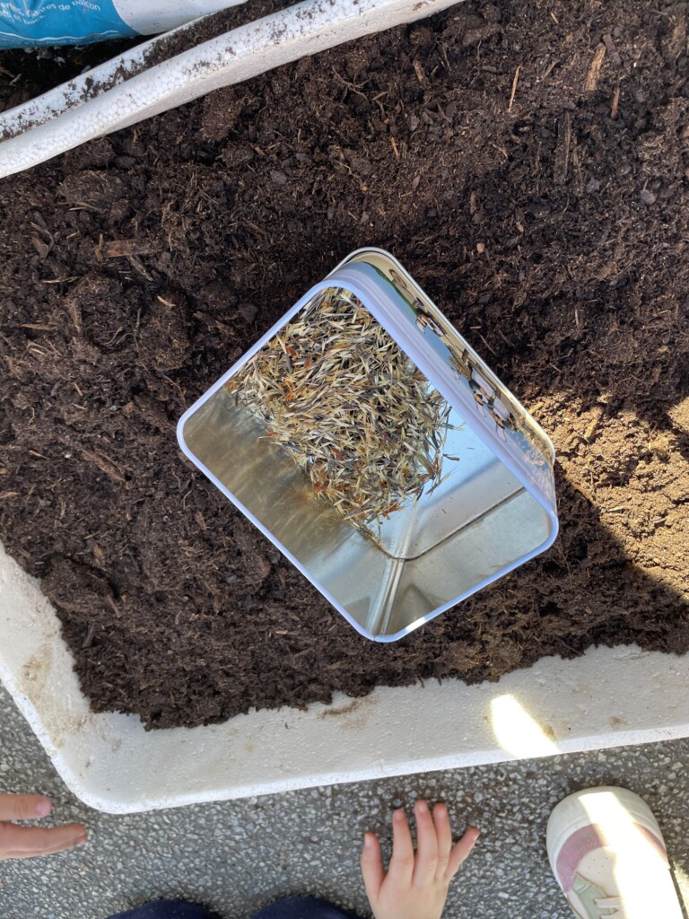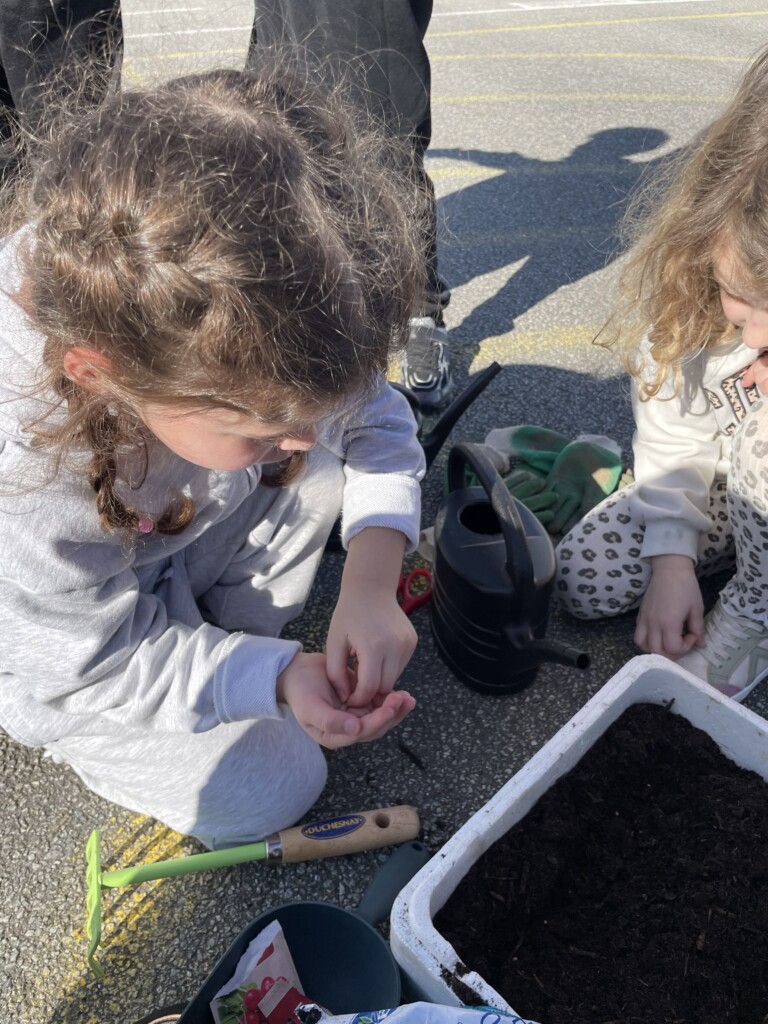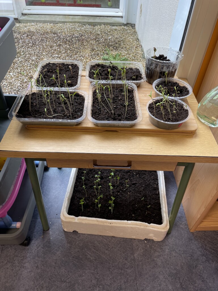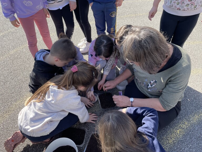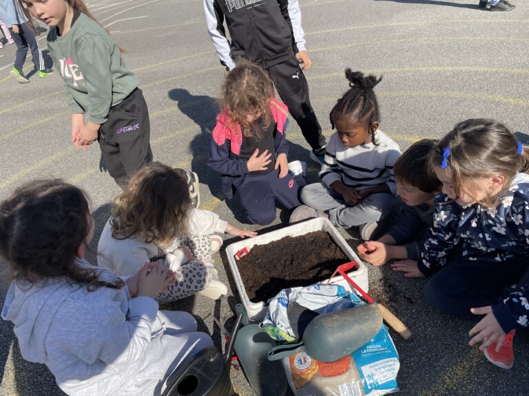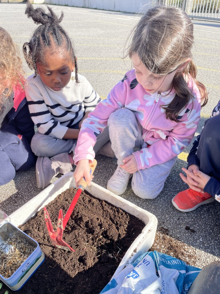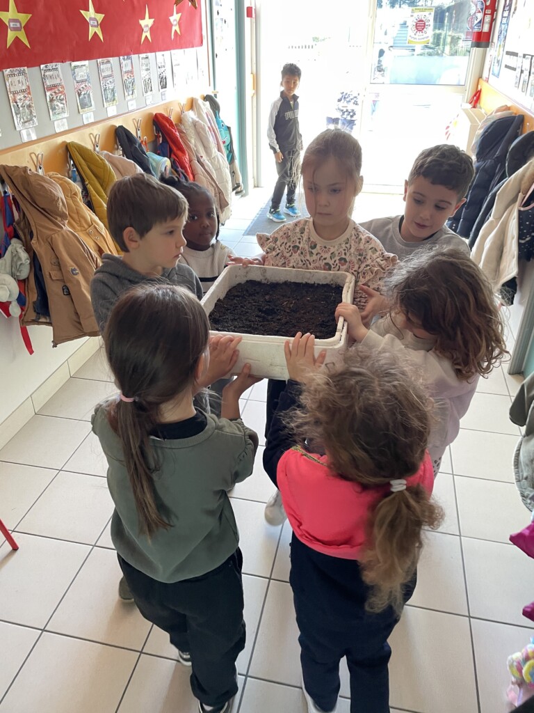 Durant la période 4, les élèves de GS-CP ont travaillé autour du thème du printemps et du jardinage. Ils ont réalisé des semis et des plantations en classe (cosmos, radis, tournesols, œillets d’Inde), qu’ils ont ensuite installés dans le jardin pédagogique et dans le patio. Les enfants peuvent ainsi observer la croissance des végétaux au fil du temps et comparer les cultures réalisées à l’intérieur et à l’extérieur. Ces activités leur permettent de découvrir les besoins des plantes tout en développant leur sens de l’observation.