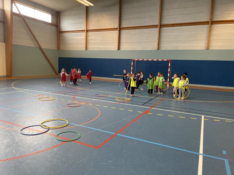 Les CP ont également débuté leur cycle de piscine tous les vendredis et celui de hand le lundi avec un animateur du club de Locminé. Les grandes sections utilisent la salle de motricité pour travailler sur les parcours et le vocabulaire spatial qui est lié.