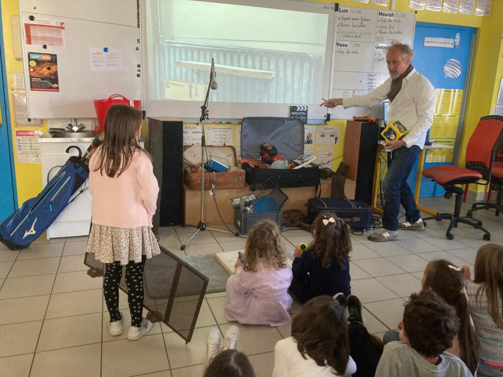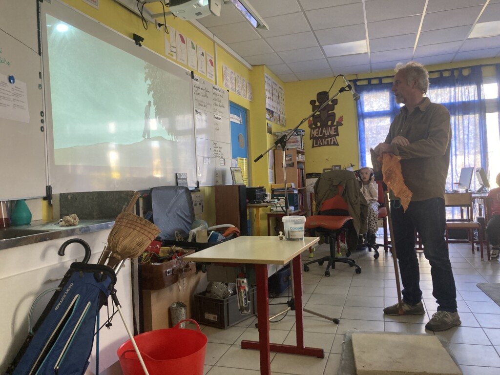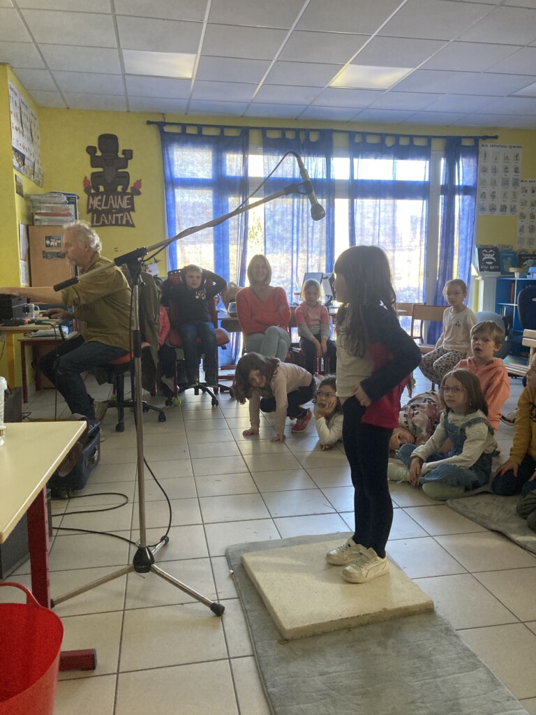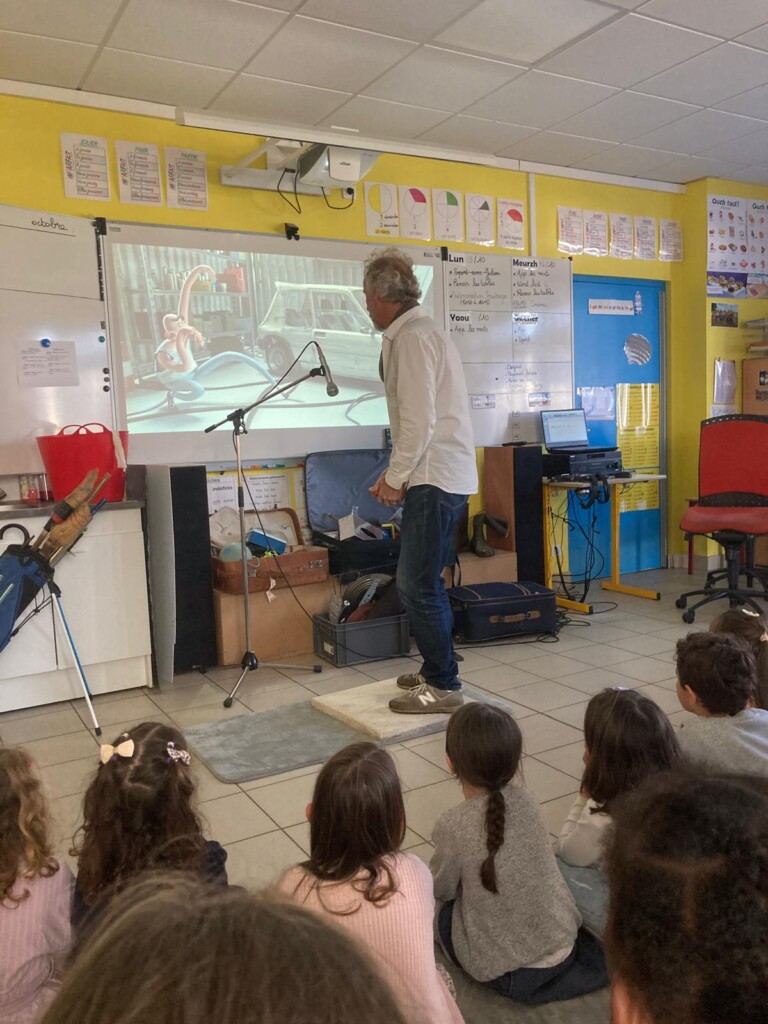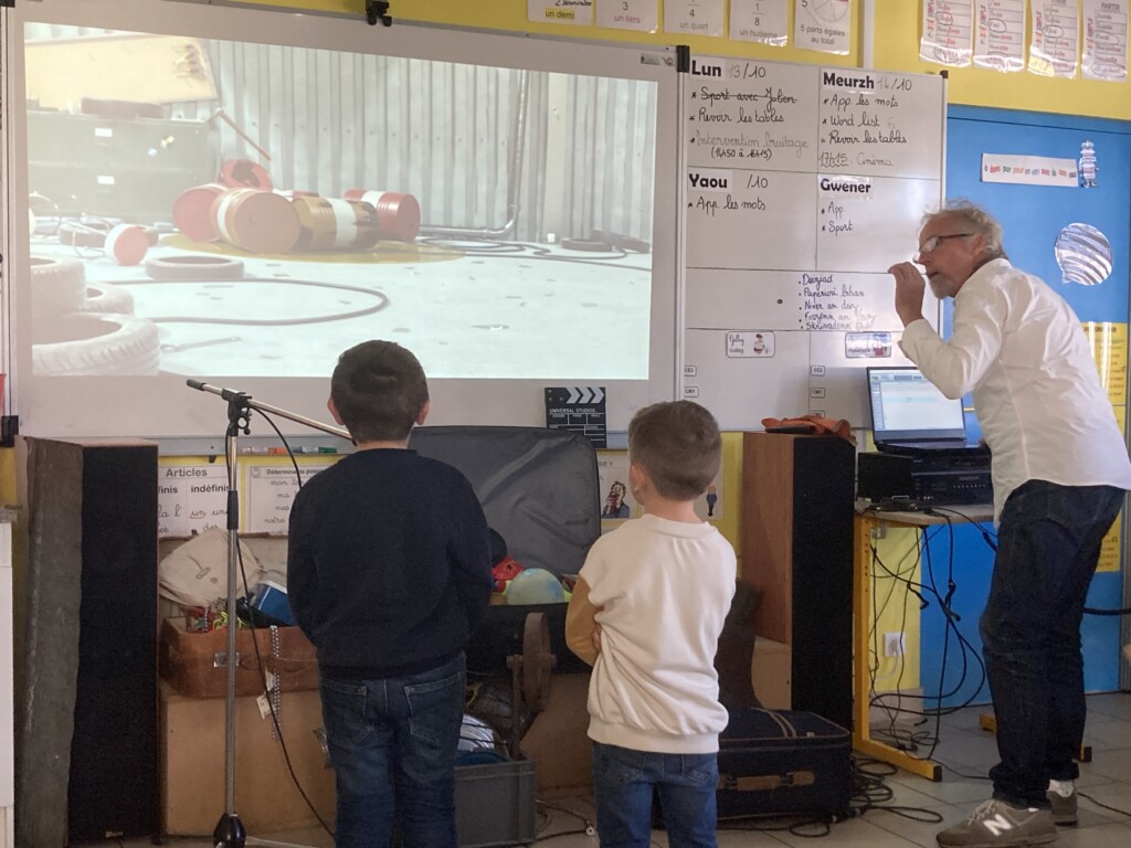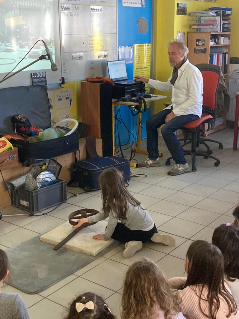 Nous avons également accueilli Olivier le bruiteur, qui a initié les enfants à la création de bruitages sur des dessins animés muets : une expérience originale et amusante !