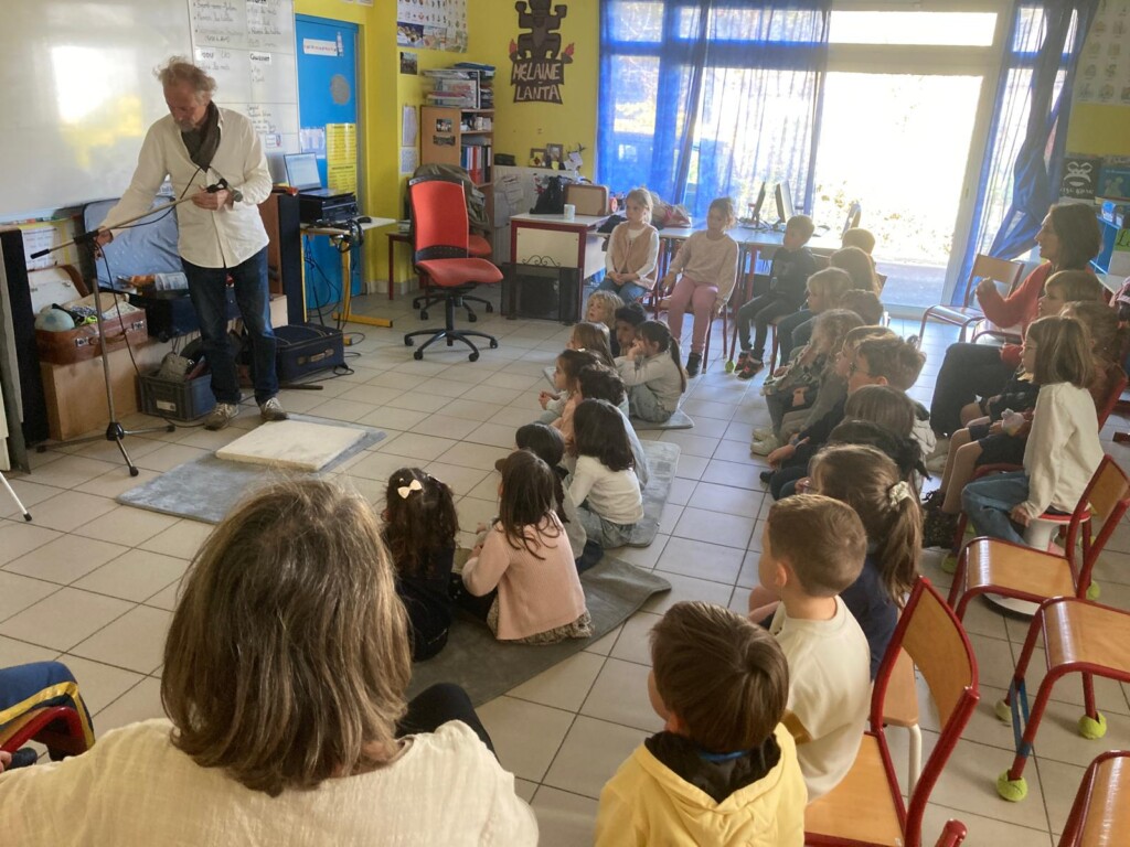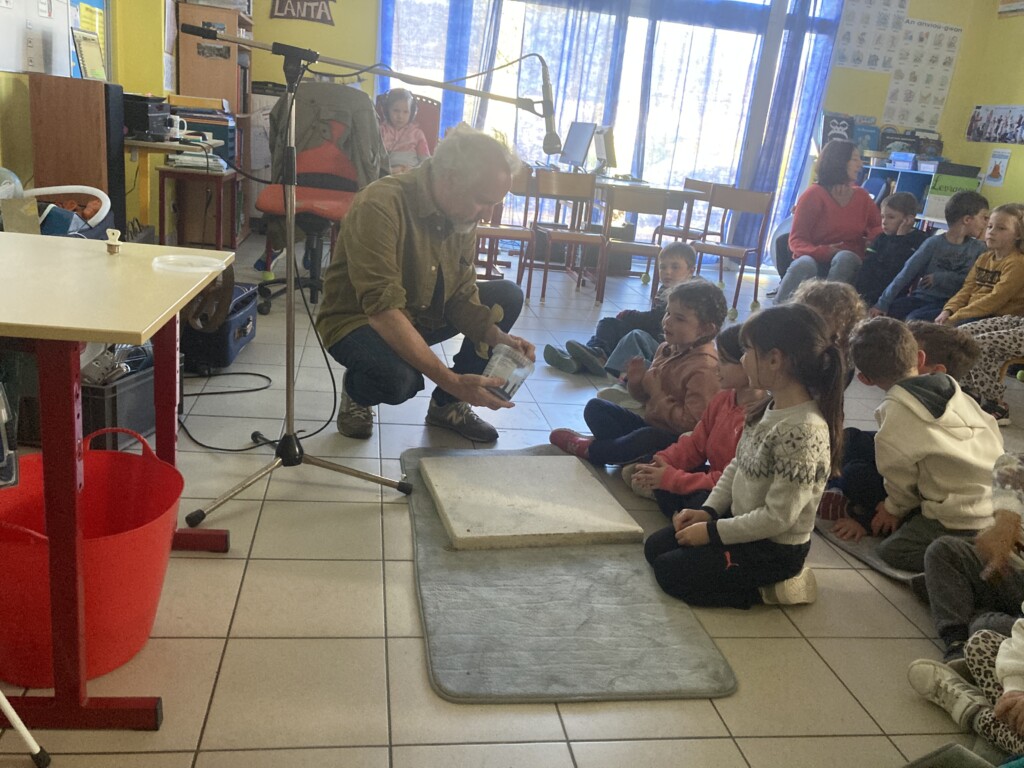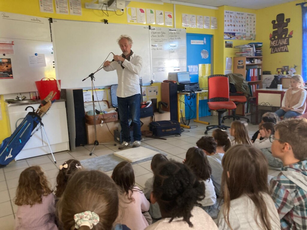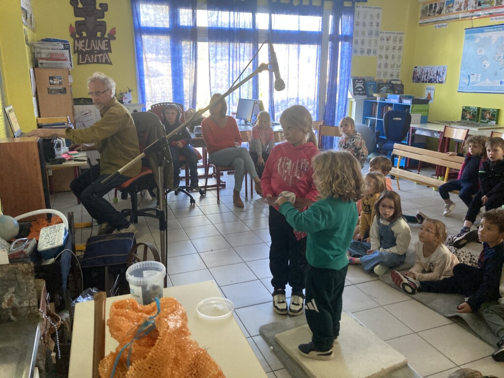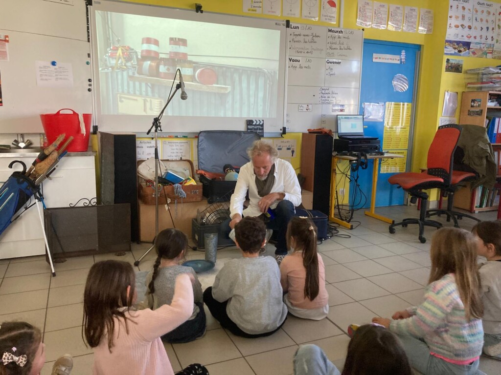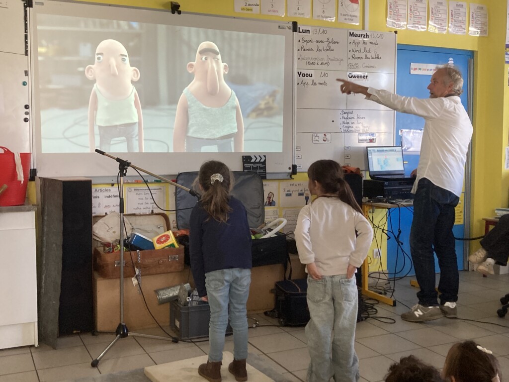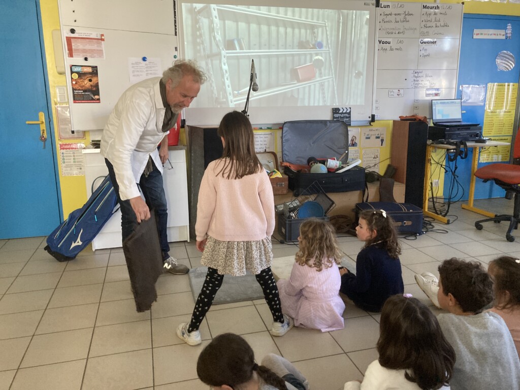 Nous avons également accueilli Olivier le bruiteur, qui a initié les enfants à la création de bruitages sur des dessins animés muets : une expérience originale et amusante !