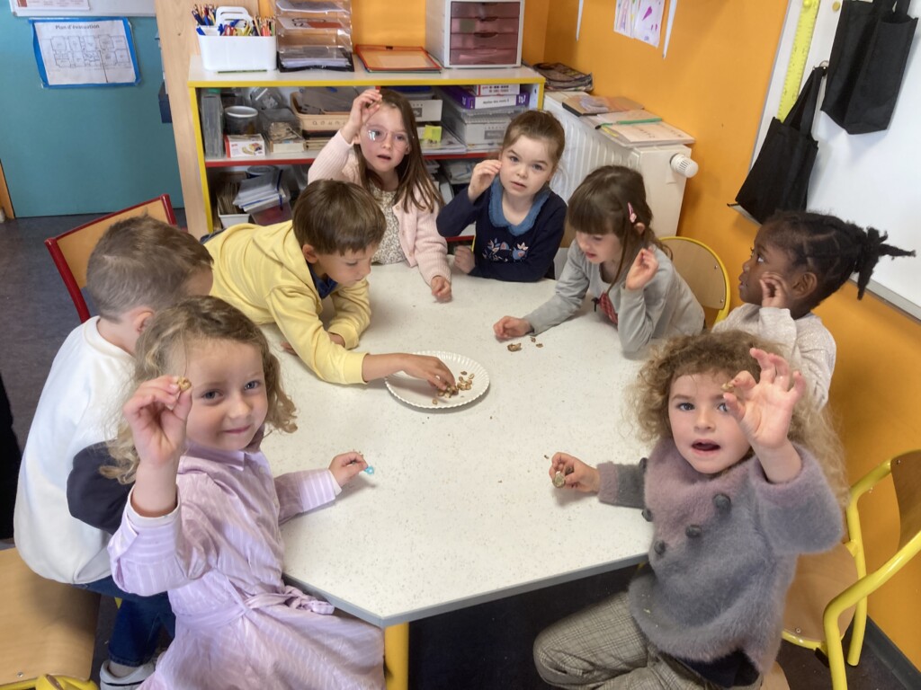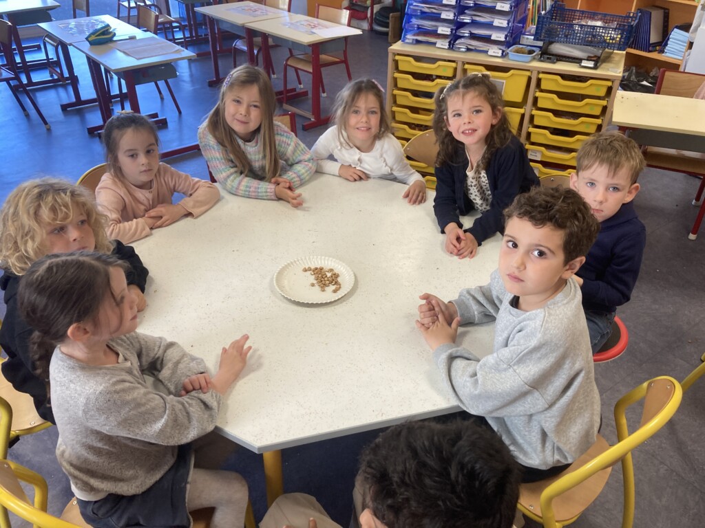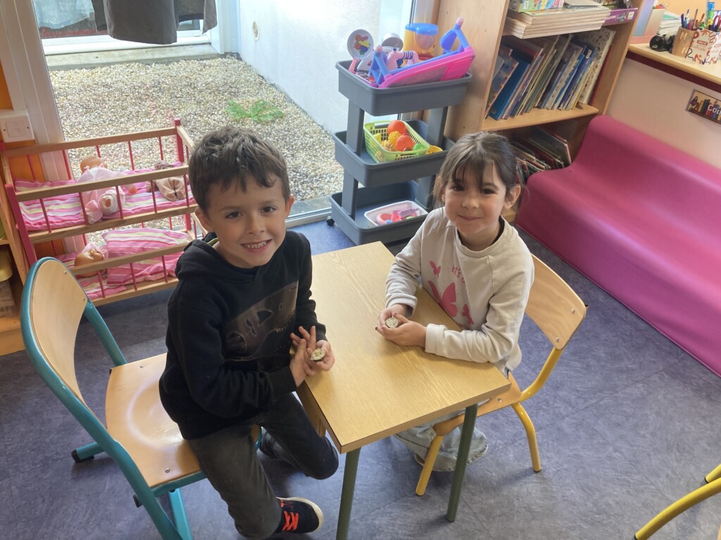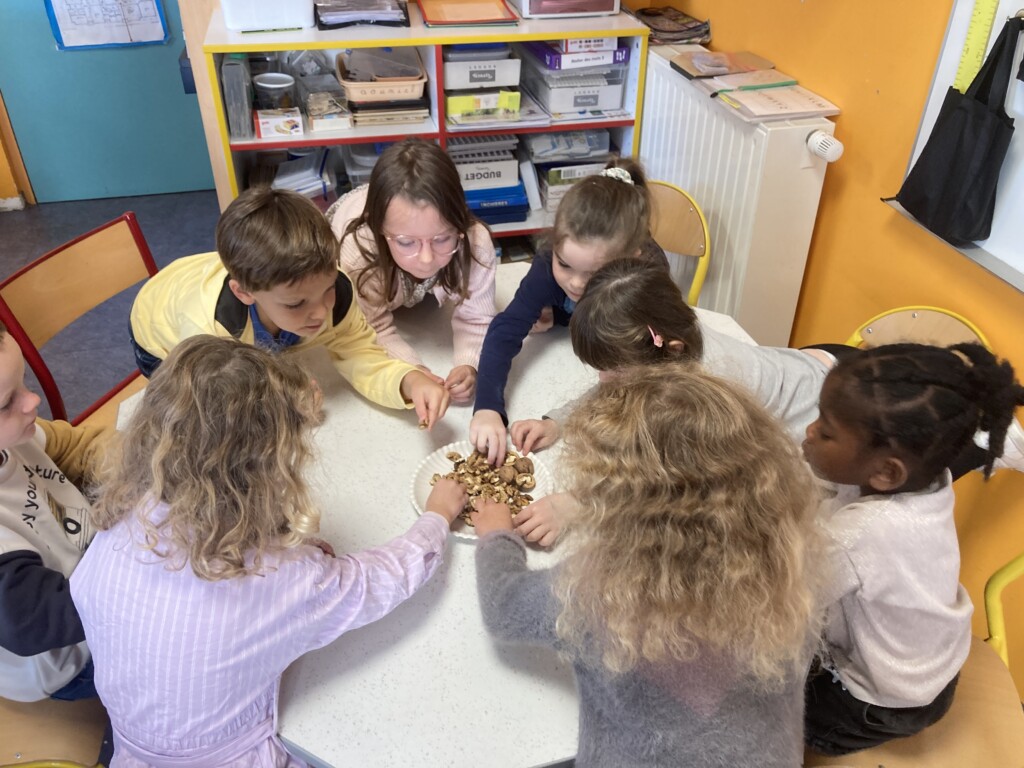 Tout au long du mois, nous avons exploré le thème de l’automne à travers des activités artistiques et sensorielles : les enfants ont réalisé de jolies créations aux couleurs de la saison et ont pu déguster différents fruits d’automne (noix, noisettes, châtaignes).