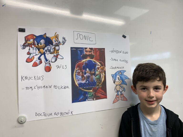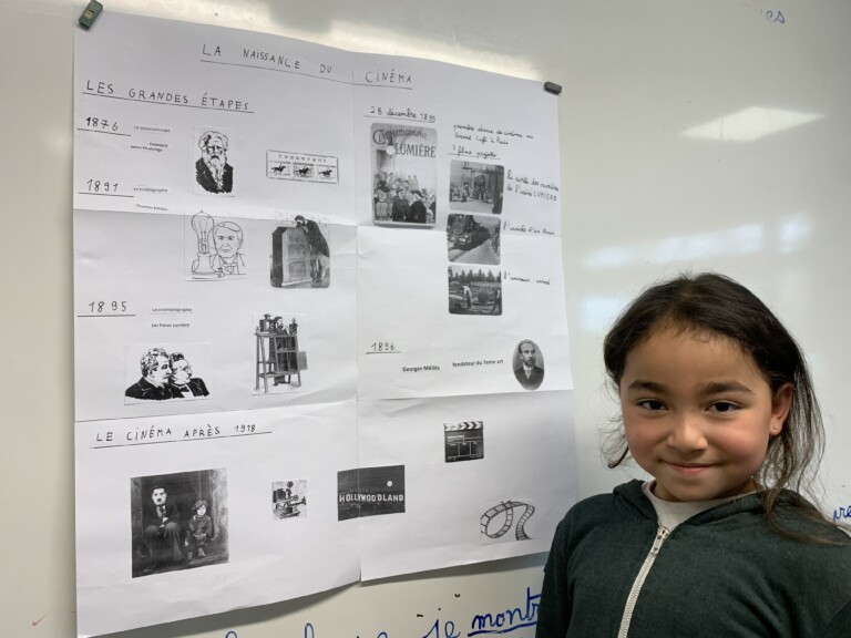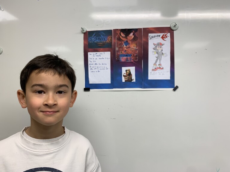 Les élèves de la classe continuent à relever le défi ! Chacun est prêt le jour prévu pour présenter son travail. Plusieurs ont choisi de parler des films ou séries qu'ils connaissent, ceci permet à chacun de participer et de s'exprimer en échangeant sur leurs goûts, leur compréhension du film... Lorenzo : Sam et Cat. Eliott : Sonic 3. Mathis : Sonic 2. Capucine : Harry Potter. Léna : Lilo et Stich. Quant à Khiara et Léa, elles ont choisi un sujet bien différent qui a permis aux camarades d'enrichir leur culture du cinéma : Khiara s'est intéressée à la naissance du cinéma. Léa nous a fait découvrir une façon originale qu'elle a expérimentée pour regarder un film : Le cinéma à la piscine. Nous attendons avec impatience la suite des exposés après les vacances de printemps !
