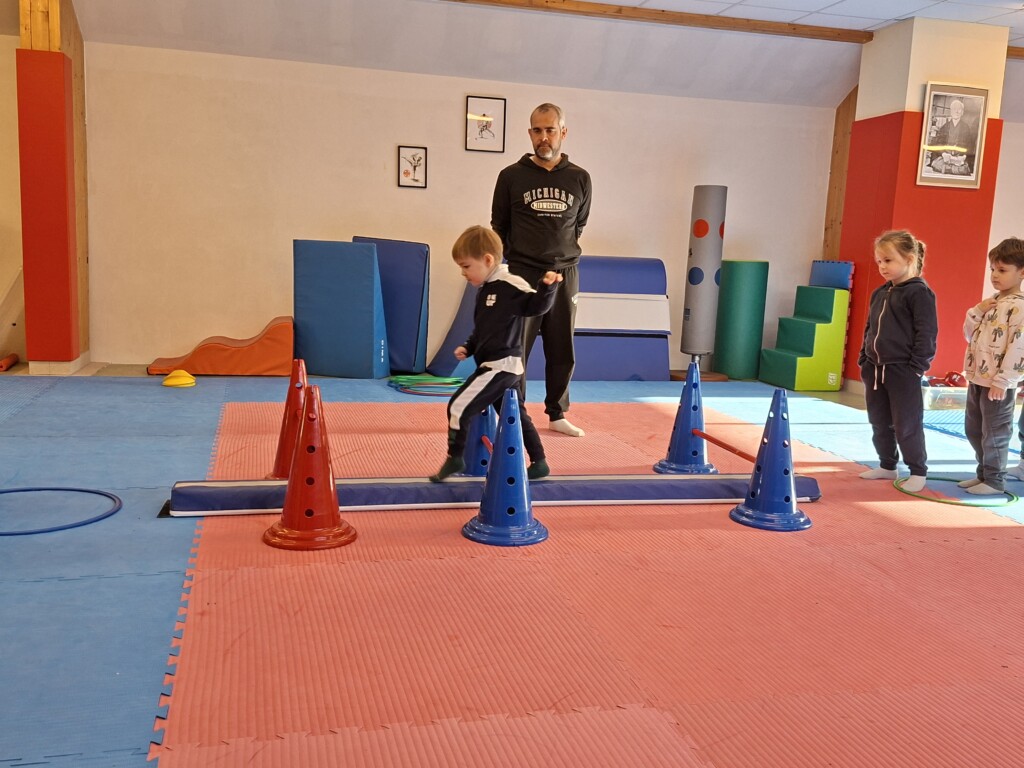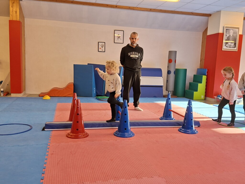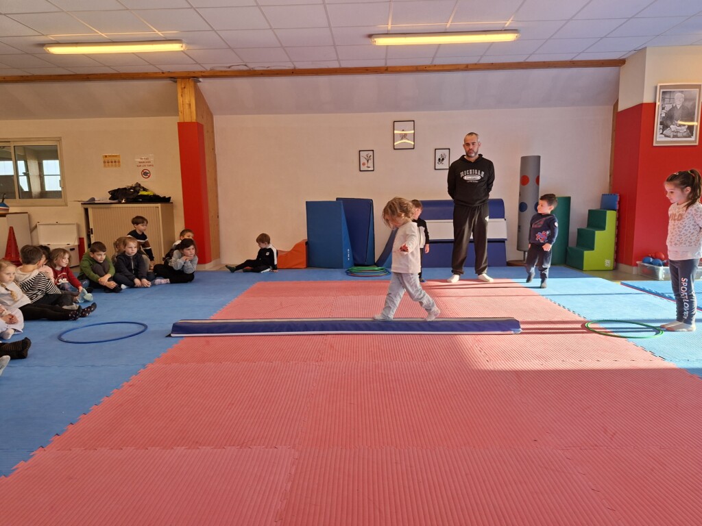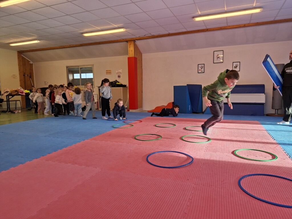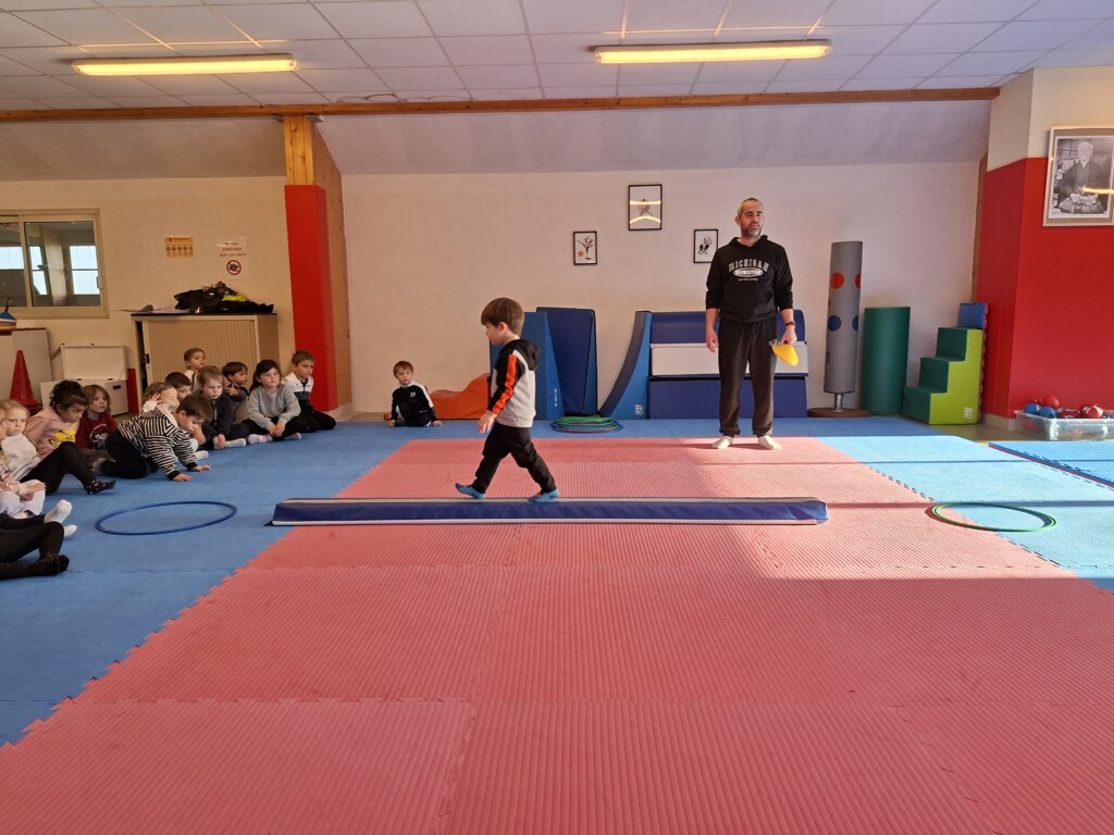 Des activités de gym étaient au programme de cette 2ème période avec Julien, l’animateur sportif. Lors de ces séances, nous avons appris à marcher sur une poutre, sauter et bien se réceptionner, faire des roulades avant et arrière pour travailler l’équilibre et la motricité.