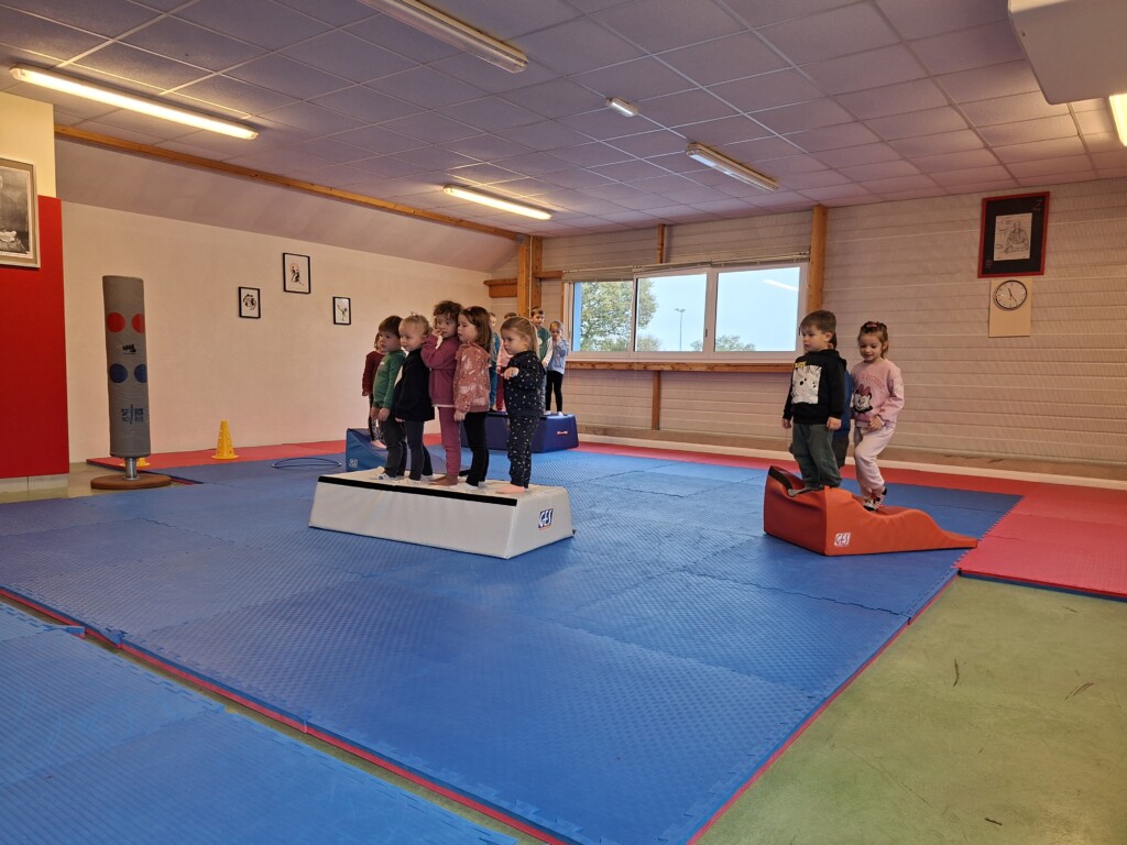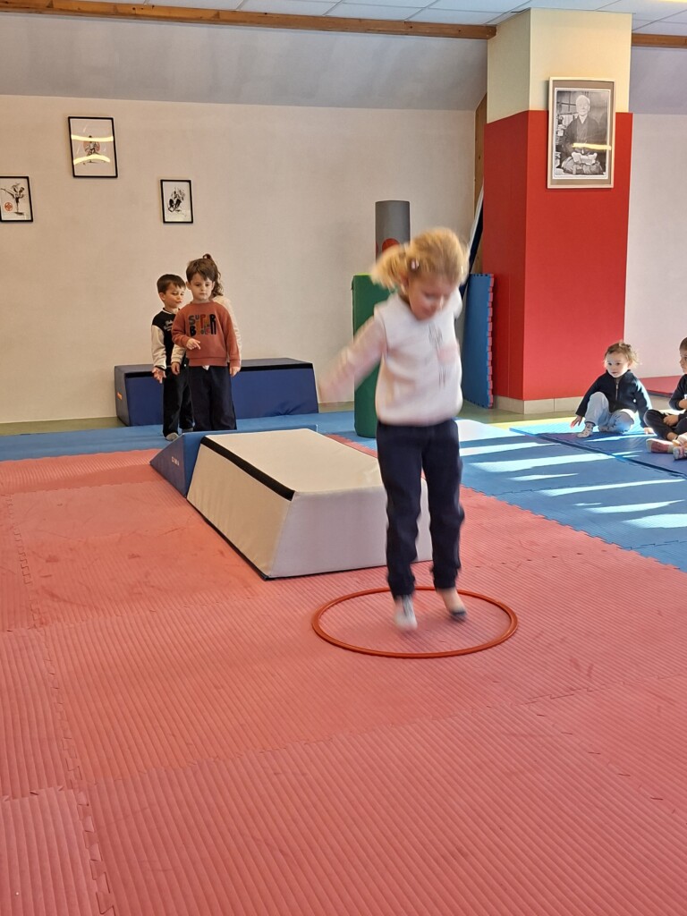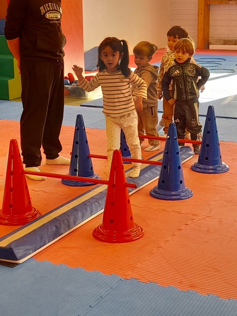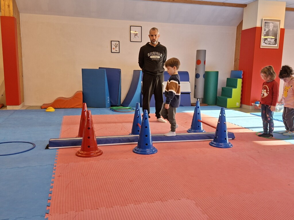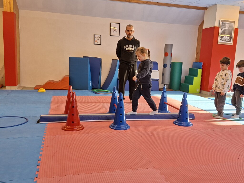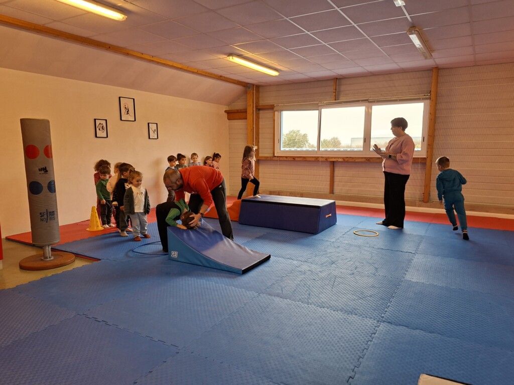 Des activités de gym étaient au programme de cette 2ème période avec Julien, l’animateur sportif. Lors de ces séances, nous avons appris à marcher sur une poutre, sauter et bien se réceptionner, faire des roulades avant et arrière pour travailler l’équilibre et la motricité.