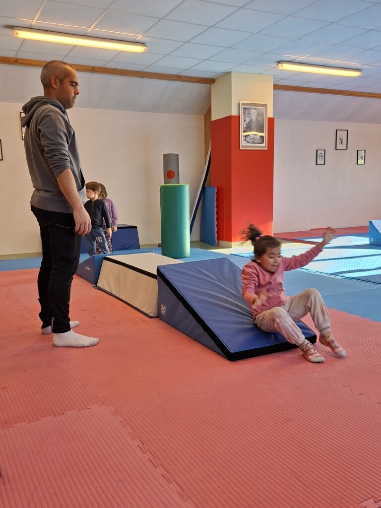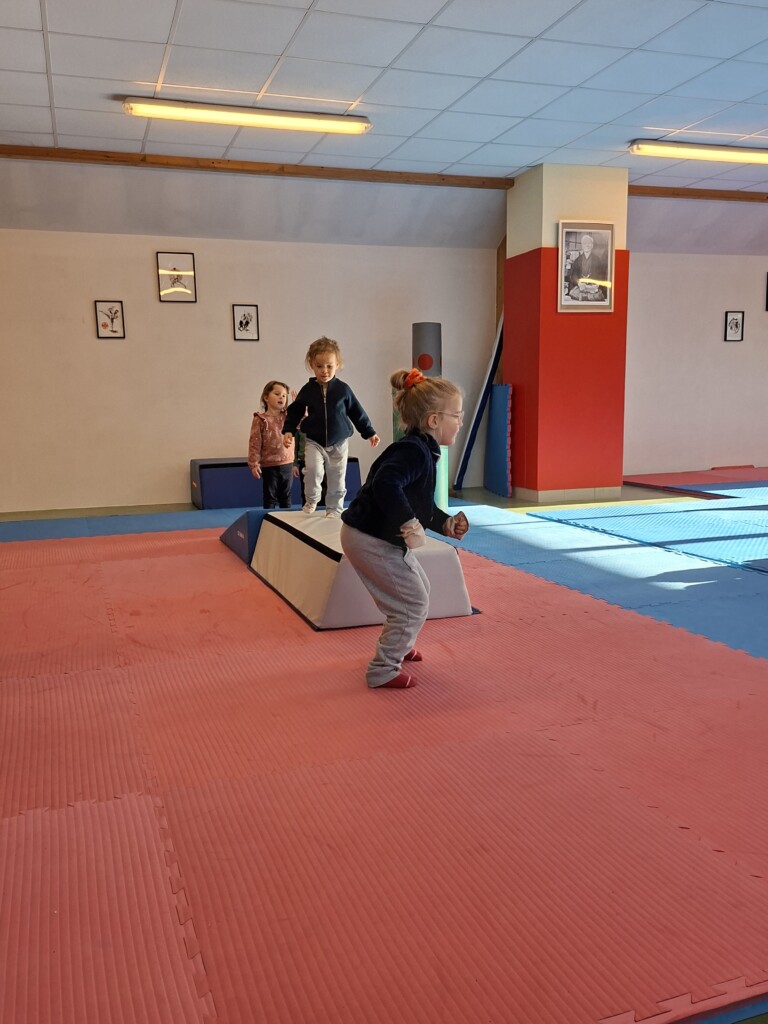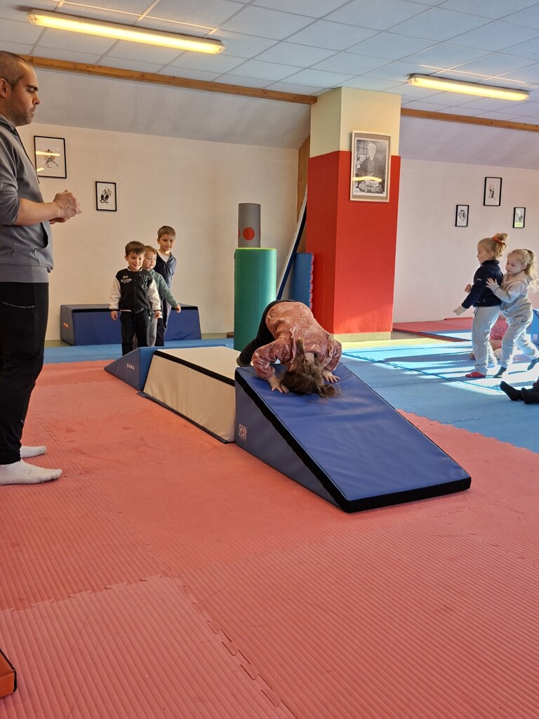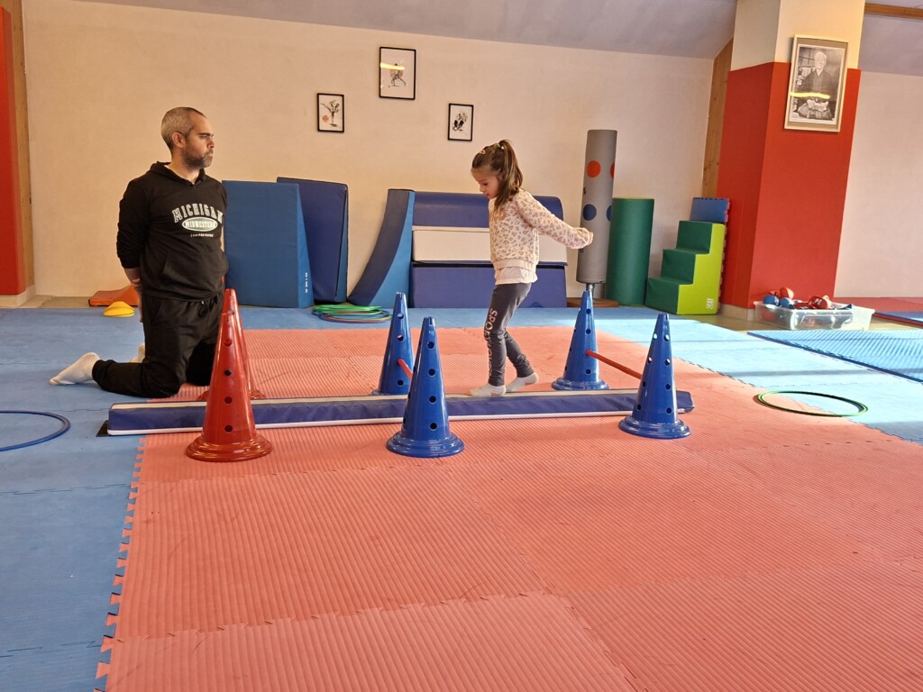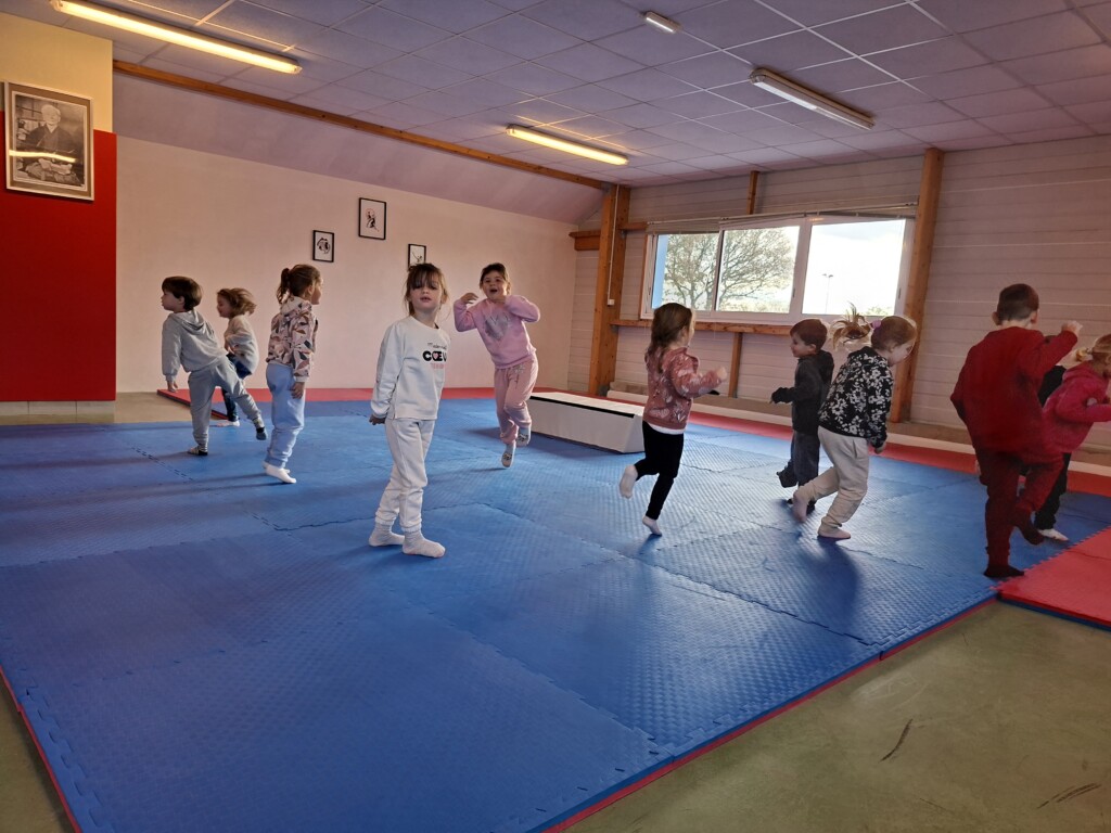 Des activités de gym étaient au programme de cette 2ème période avec Julien, l’animateur sportif. Lors de ces séances, nous avons appris à marcher sur une poutre, sauter et bien se réceptionner, faire des roulades avant et arrière pour travailler l’équilibre et la motricité.